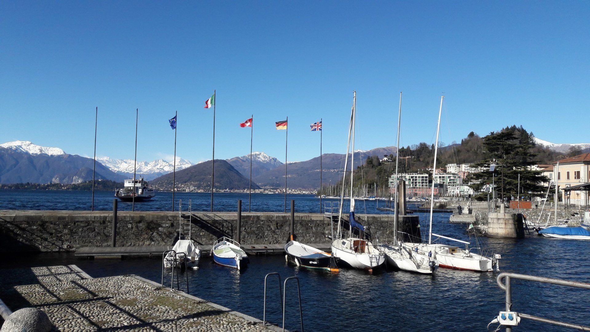 Appartamento con affaccio sul lago Maggiore in cui si scorgono i due porti ed un frammento di lago e le montagne sullo sfondo. Ristrutturato con cura e passione, abbiamo  recuperato il più possibile i materiali originali come il pavimento in marmette dei primi '900 e il tavolo antico.